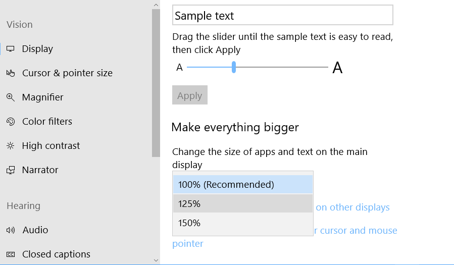 Under Display, Make text bigger, drag the slider until the sample text is easy to read.