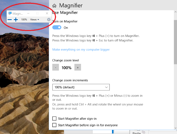 By clicking ‘Turn on Magnifier’ on, the pop-up magnifier.