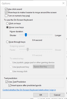 Once you enable the On-Screen keyboard you can activate the Options key, and select which options you want to use.