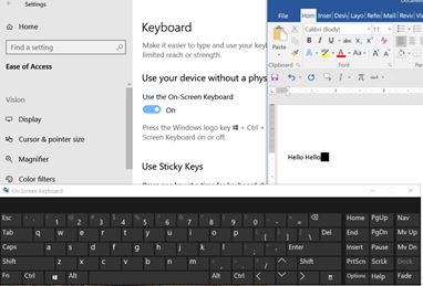 - Click on keys – click or tap the On-Screen keys to enter text.